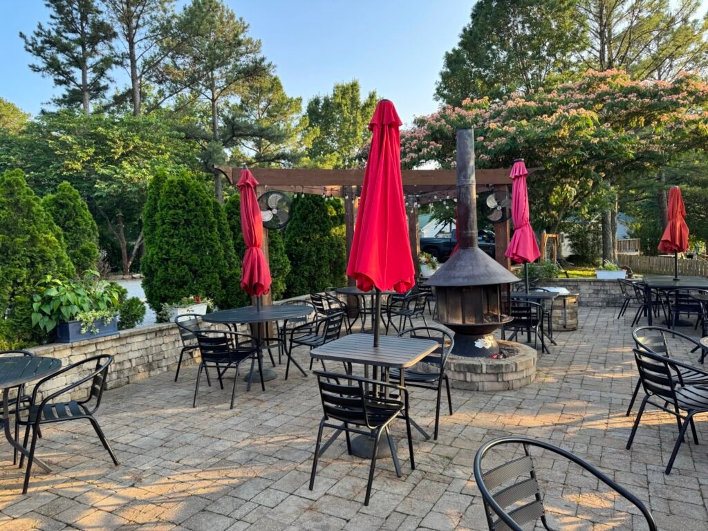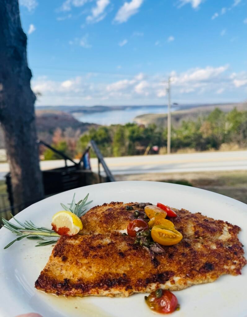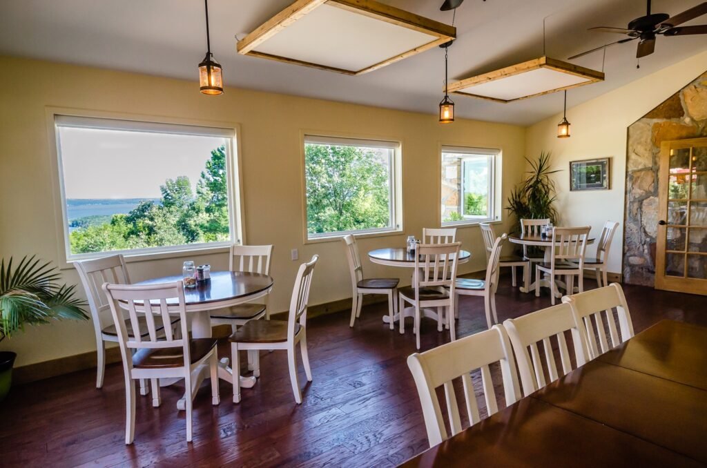 The on-site restaurant is known for its gourmet dining experience in a rustic setting, featuring a European-trained chef. The menu includes items like expertly prepared steaks, fresh seafood, pasta dishes, and specialty burgers, all made from scratch. Guests can dine indoors or on the outdoor patio with a fire pit, both offering stunning views of the lake and mountains. Reservations are recommended, especially for dinner or weekend visits. You can make reservations by calling them or via their website.