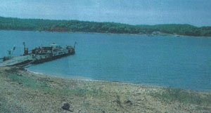 Today, the spot where the old village once stood is covered by about 15 feet of lake water, and the 1934 concrete bridge remains standing, about 80 feet under the surface of Norfork Lake.